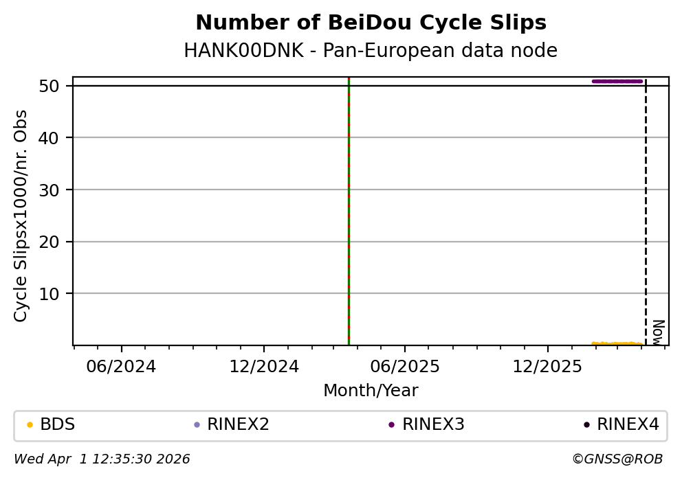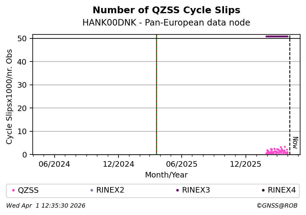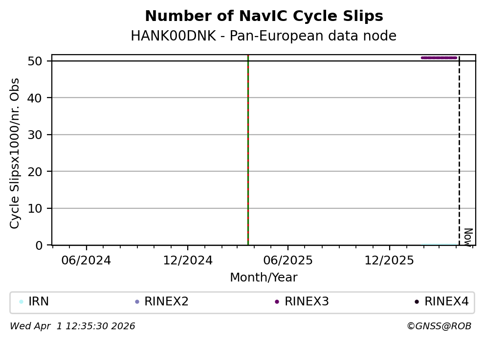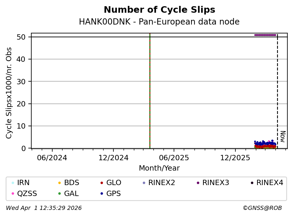 These plots display the number of identified phase cycle slips for each constellation tracked by the station.
