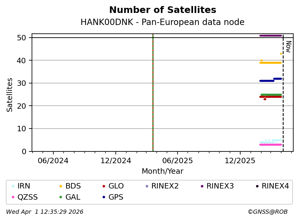 These plots display the number of observed satellites for each constellation tracked by the station.