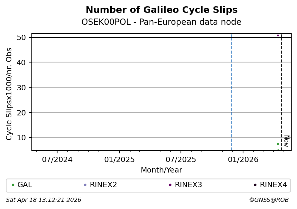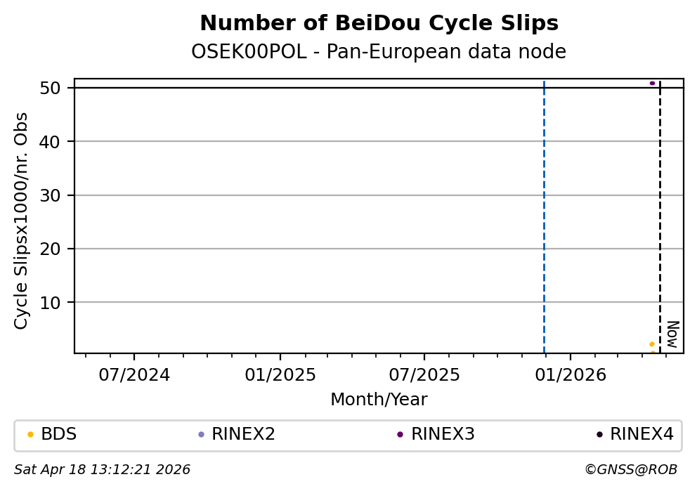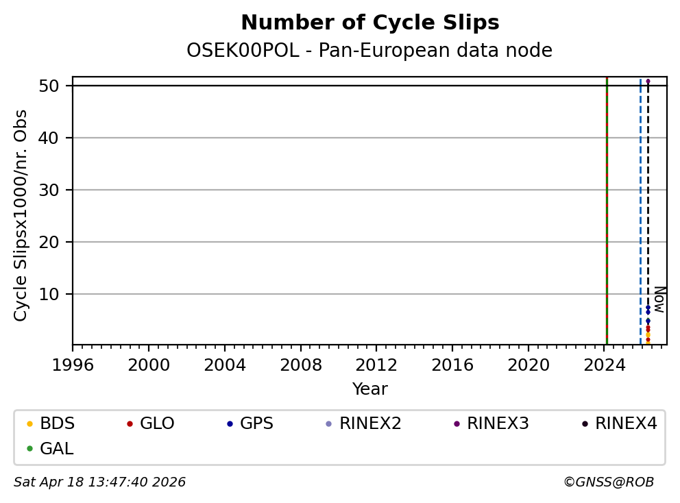 These plots display the number of identified phase cycle slips for each constellation tracked by the station.