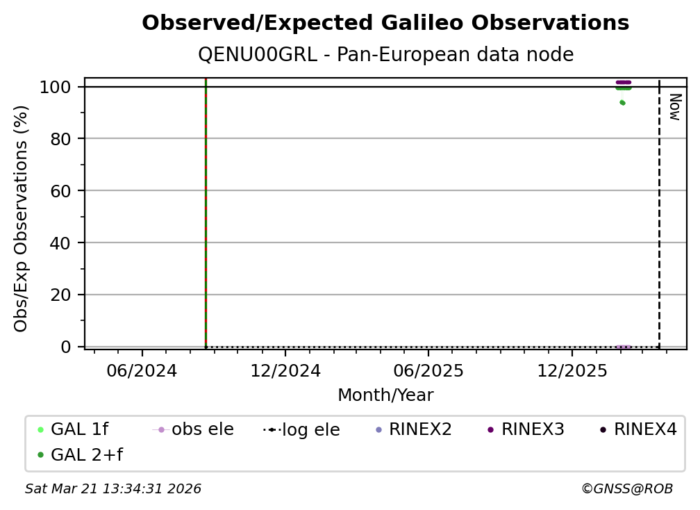 The percentage corresponds, for each constellation tracked by the station, to the ratio of the number of observations in the daily RINEX file with respect to the number of expected observations: