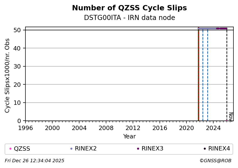 These plots display the number of identified phase cycle slips for each constellation tracked by the station.