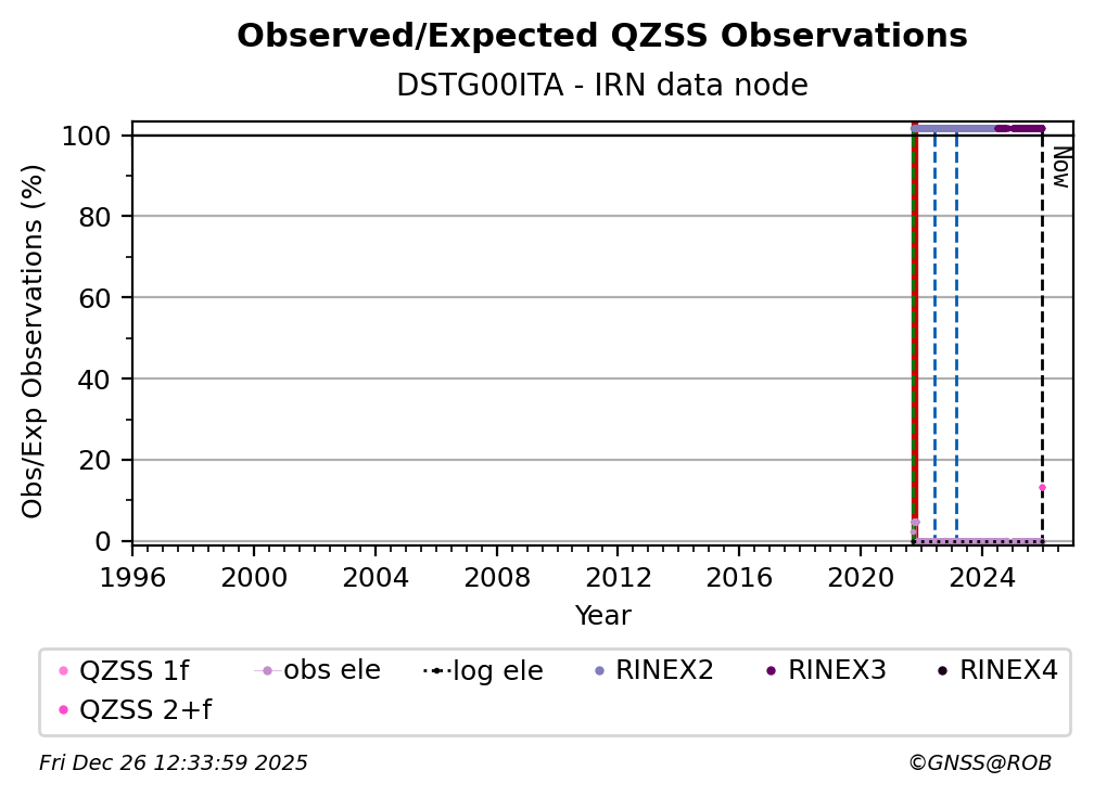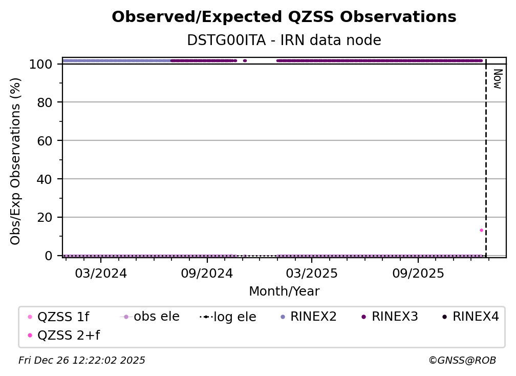 The percentage corresponds, for each constellation tracked by the station, to the ratio of the number of observations in the daily RINEX file with respect to the number of expected observations: