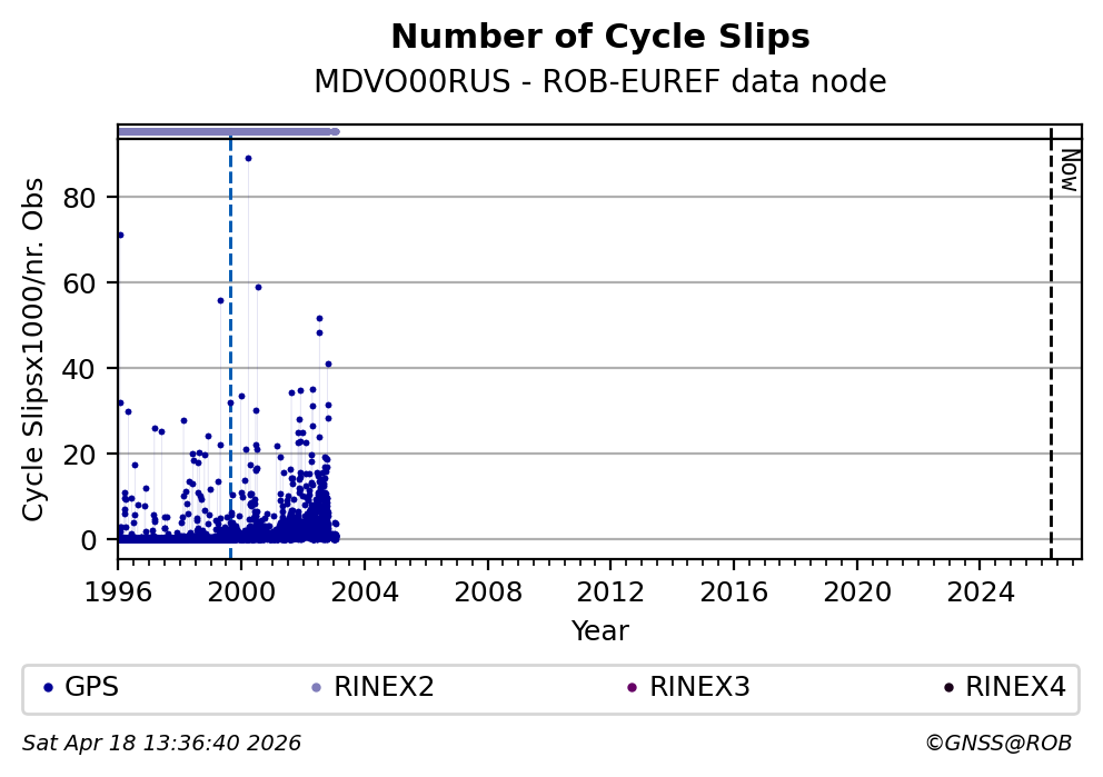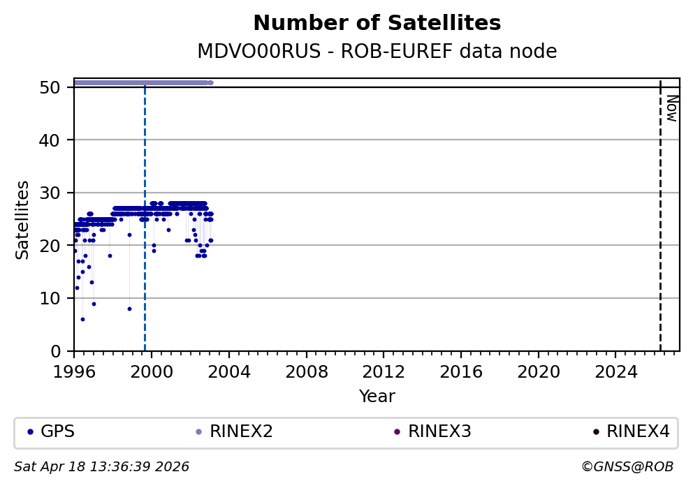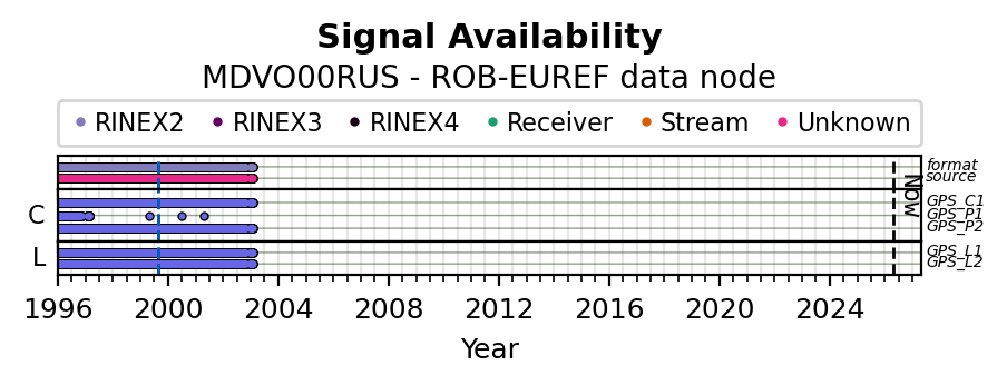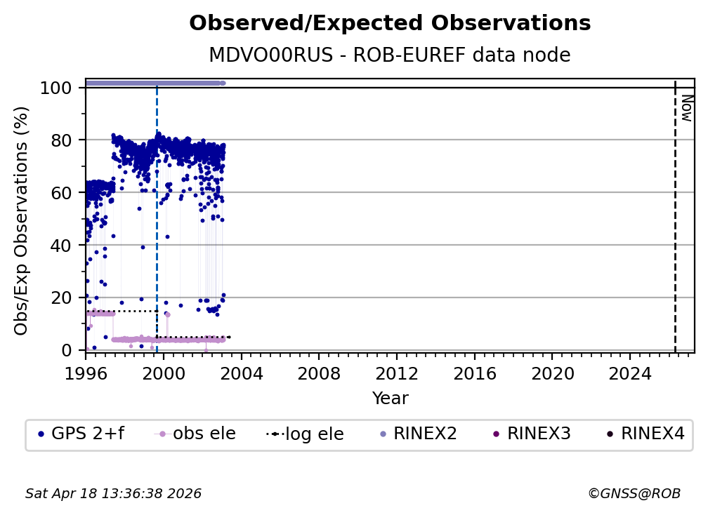 - 2+f : only observations on at least two frequencies are counted. These are the observations usable for geodetic positioning.